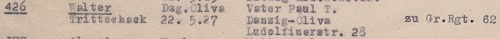 Walter Trittschack. Fragmenty księgi jednostki wojskowej z czasów II wojny światowej. Zbiory TPG Stefa Historyczna WMG.