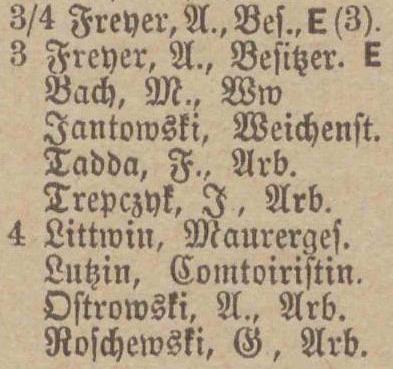 W książkach adresowych wydanych w 1897 i 1898 roku August Freyer występuje jako mieszkaniec domu rzy ul. Ludolphiner Weg 3 (Czyżewskiego 3).