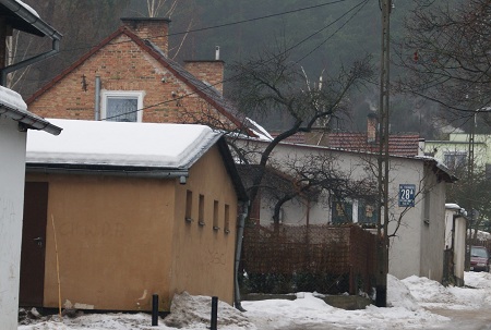 Budynek nr 28 przy ul. Czyżewskiego w Oliwie. Po lewej fragment numeru 27. Fot. Artur Wołosewicz 1977. Przekazał Robert Krygier.