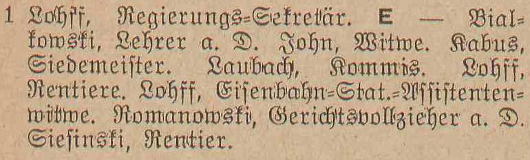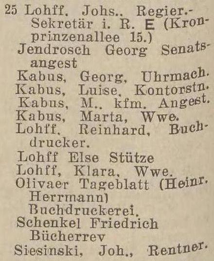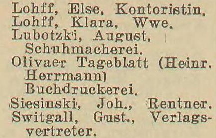 Johannes Lohff. Książka adresowa gminy Oliwa z 1916 roku. Zbiory Mirosława Piskorskiego.