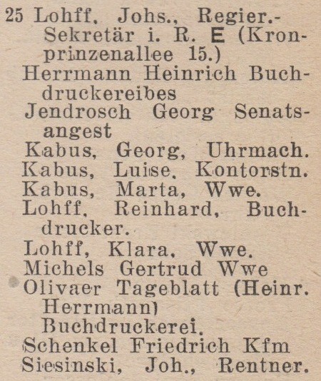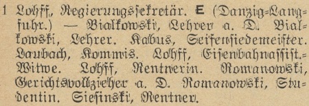 Johannes Lohff. Książka adresowa gminy Oliwa z 1915 roku. Zbiory Pomorskiej Biblioteki Cyfrowej.