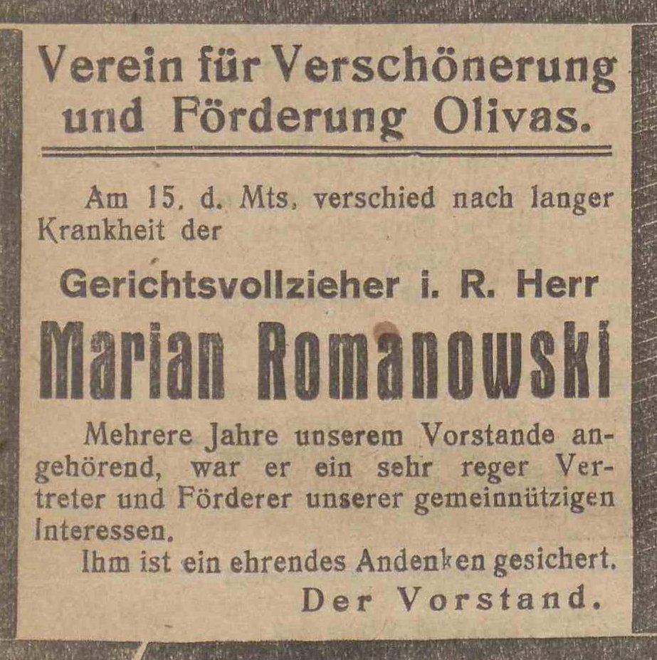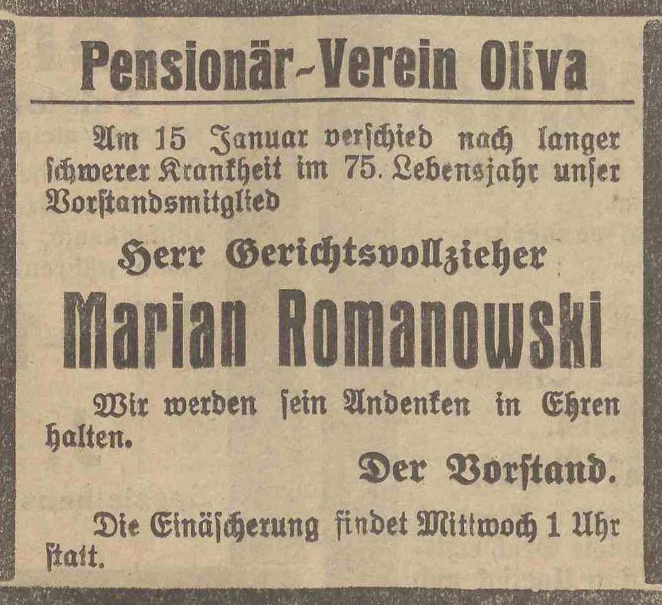 Marian Romanowski. Olivaer Zeintung nr 15 z 18. 01. 1928 r.