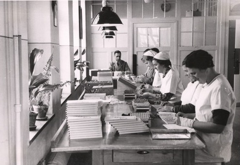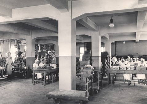 Fotografie › Było by bardzo pożądanem, aby każda gospodyni mogła zwiedzić jedną z fabryk Dra A. Oetkera. Rozmiary urządzeń, dobrze obmyślane sposoby wytwórczości, tak jak wszędzie panująca, drobiazgowa czystość, wywierają na każdego zwiedzającego doniosłe wrażenie, które natychmiast zamienia się w nieograniczone zaufanie do wyrobów fabryki.