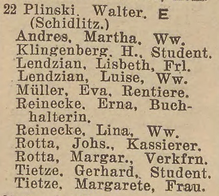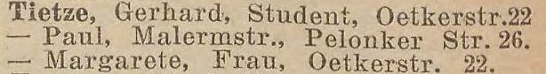 Gerhard Tietze. Margarete Tietze. Książka adresowa z 1931 roku. Zbiory Pomorskiej Biblioteki Cyfrowej.