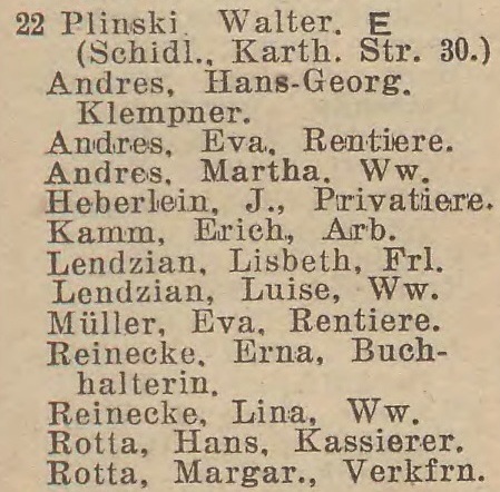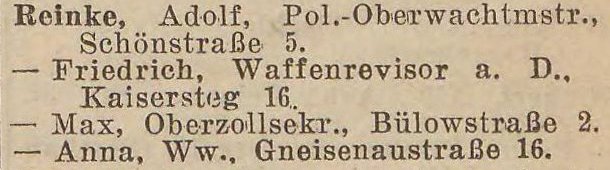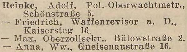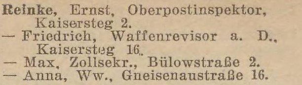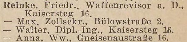 Reinke (Friedrich, Max, Walter, Anna). Książka adresowa z 1929 roku. Zbiory Pomorskiej Biblioteki Cyfrowej.