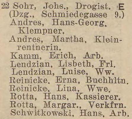 Johs. Sohr. Książka adresowa z 1937-1938 roku. Zbiory Piotra Mazurka.