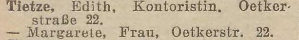 Edith Tietze. Margarete Tietze. Książka adresowa z 1933 roku. Zbiory Pomorskiej Biblioteki Cyfrowej.