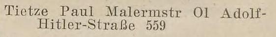 Paul Tietze (Adolf-Hitler-Straße 559). Książka adresowa z 1937-1938 roku. Zbiory Pomorskiej Biblioteki Cyfrowej.
