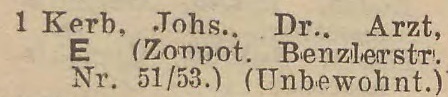 Johannes Kerb. Książka adresowa z 1931 roku. Zbiory Pomorskiej Biblioteki Cyfrowej.