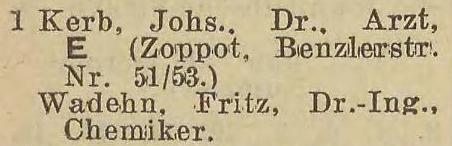 Johannes Kerb. Fritz Wadehn. Książka adresowa z 1935 roku. Zbiory Pomorskiej Biblioteki Cyfrowej.