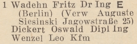 Fritz Wadehn. Książka adresowa z 1939 roku. Zbiory Krzysztofa Gryndera.