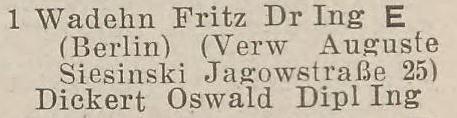 Fritz Wadehn. Książka adresowa z 1936-1937 roku. Zbiory Pomorskiej Biblioteki Cyfrowej.