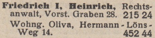 Heinz Friedrich. Książka adresowa z 1933 roku. Zbiory Pomorskiej Biblioteki Cyfrowej.