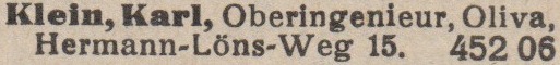 Karl Klein. Książka adresowa z 1942 roku. Zbiory Pomorskiej Biblioteki Cyfrowej.