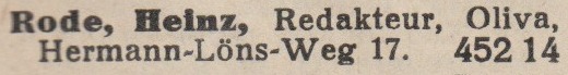Heinz Rode. Ksi¹¿ka telefoniczna z 1937 roku. Zbiory TPG Strefa Historyczna WMG.