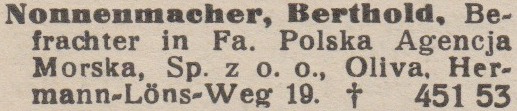 Berthold Nonnenmacher. Książka adresowa z 1939 roku. Zbiory Krzysztofa Gryndera.
