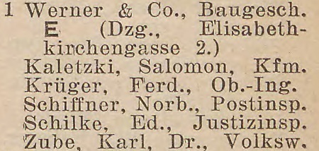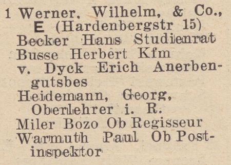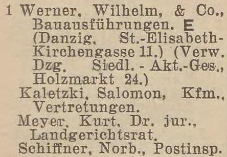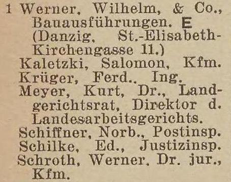 Wilhelm Werner. Książka adresowa z 1929 roku. Zbiory Pomorskiej Biblioteki Cyfrowej.
