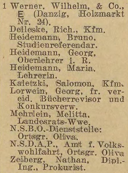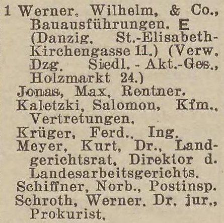 Wilhelm Werner. Książka adresowa z 1931 roku. Zbiory Pomorskiej Biblioteki Cyfrowej.