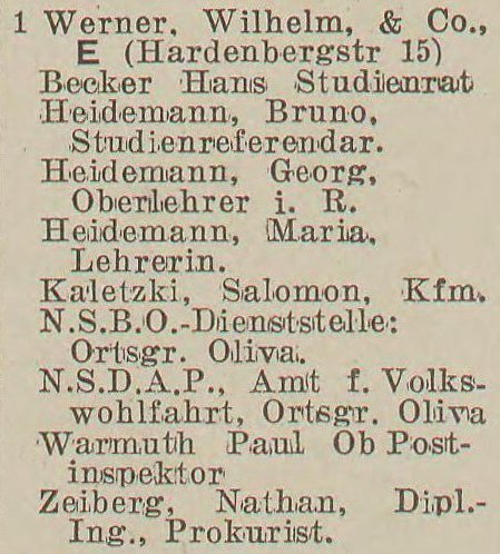 Wilhelm Werner. Książka adresowa z 1933 roku. Zbiory Pomorskiej Biblioteki Cyfrowej.