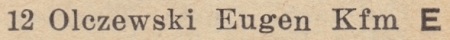 Eugen Olszewski. Książka adresowa z 1939 roku. Zbiory Krzysztofa Gryndera.