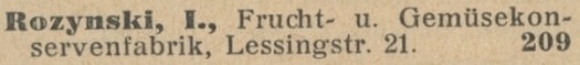 Rozynski Joseph. Książka adresowa z 1926 roku. Ze strony: wiki-de.genealogy.net..
