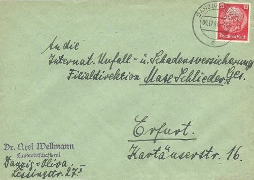 Axel Wellmann. Landwirtschaftsrat. Danzig-Oliva 08.12.1942. Ze strony www.Allegro.pl.