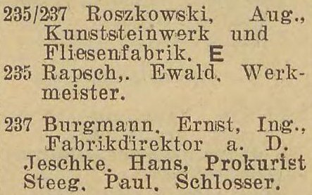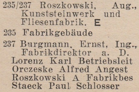 August Roszkowski. Książka adresowa z 1931 roku. Zbiory Pomorskiej Biblioteki Cyfrowej.