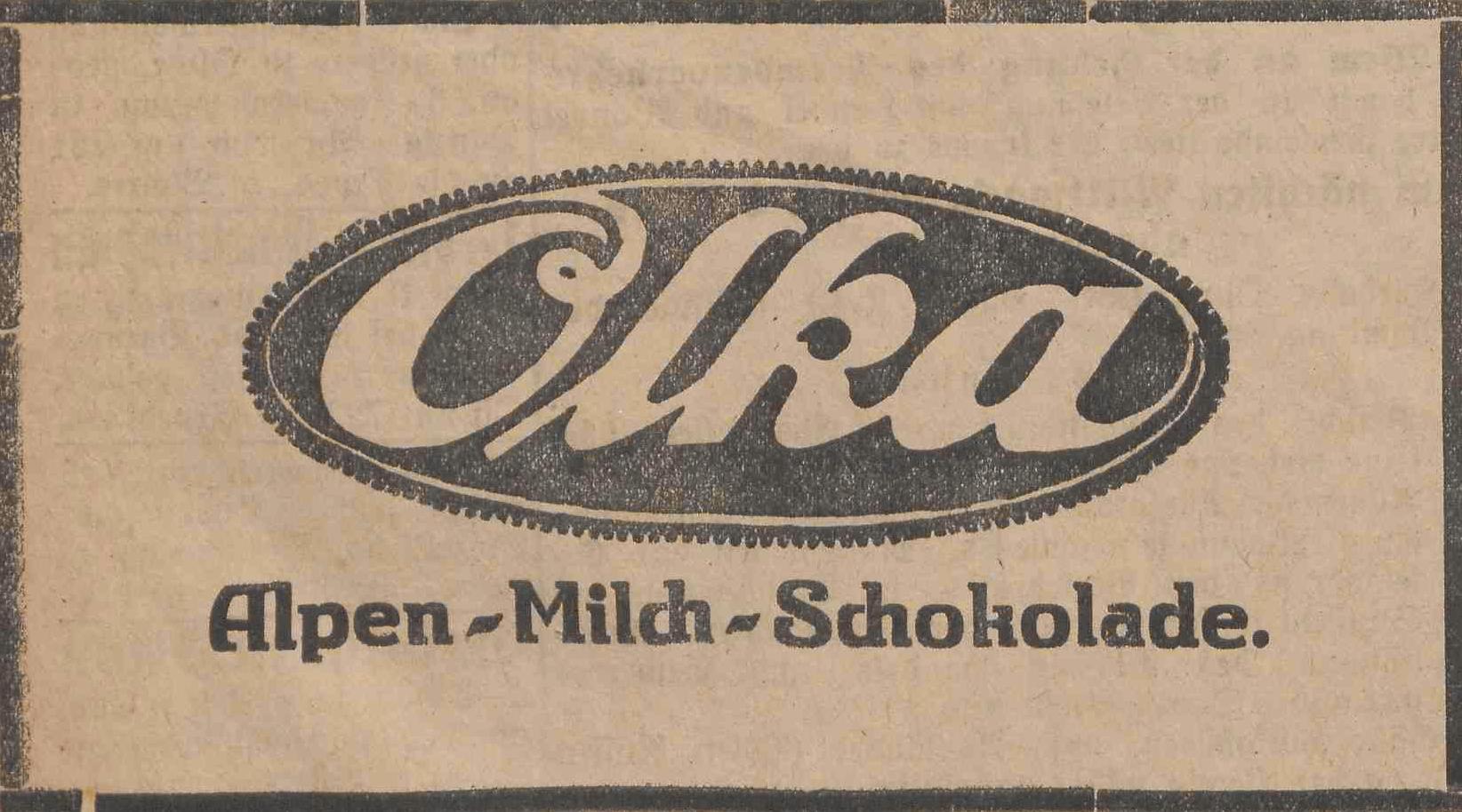 Olka. Schokoladenwerke. Reklama z 1927 roku. Archiwum DawnaOliwa.pl.