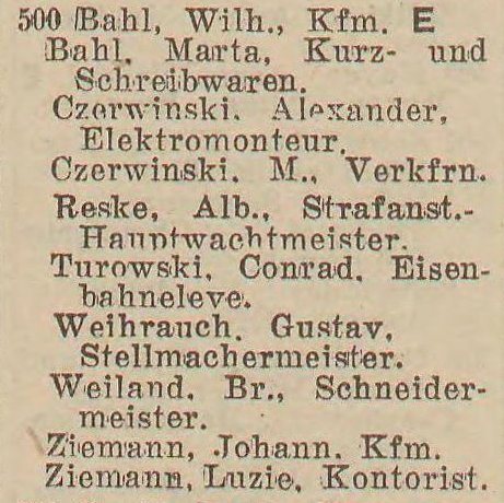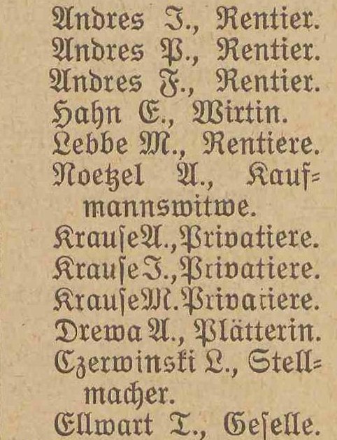 W (Danziger Straße 51): Czerwinski (2 osoby), Lebbe (1 osobę).