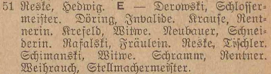 Reske. Książka adresowa gminy Oliwa z 1916 roku. Zbiory Mirosława Piskorskiego.