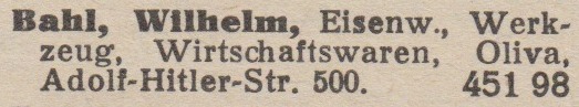 Wilhelm Bahl. Książka telefoniczna z 1937 roku. Zbiory TPG Strefa Historyczna WMG.