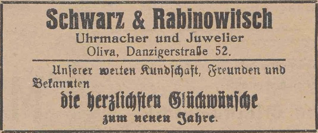Schwarz & Rabinowitsch. Podziękowania noworoczne, Danziger General (Olivaer Zeitung) nr 306 z 31. 12. 1926.