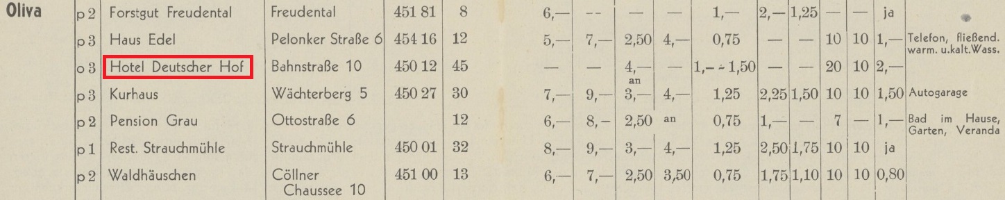 Deutser Hof. Książka adresowa gminy Oliwa z 1920-1921 r. Zbiory Pomorskiej Biblioteki Cyfrowej.