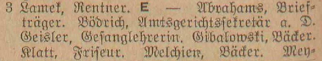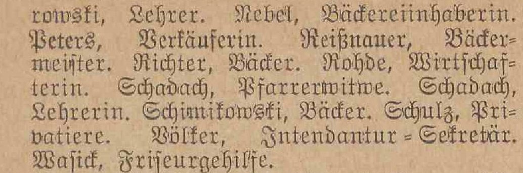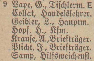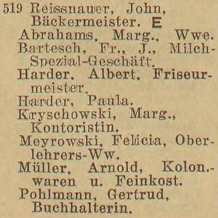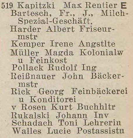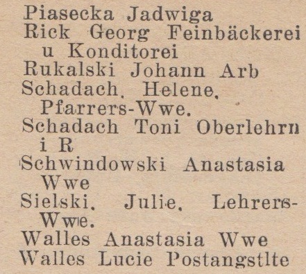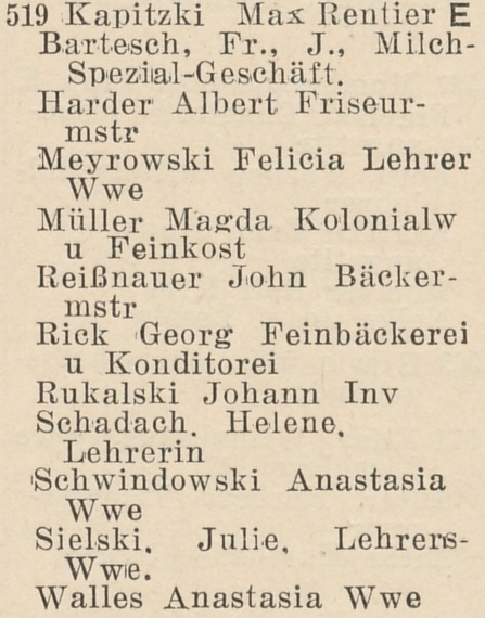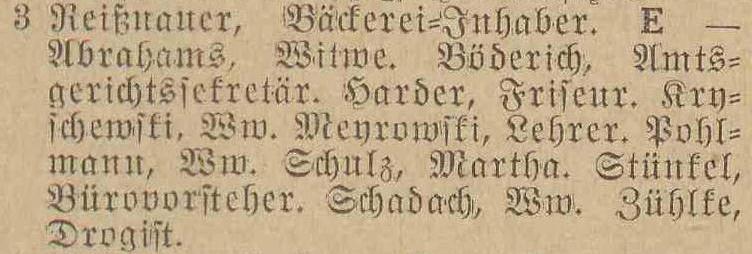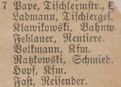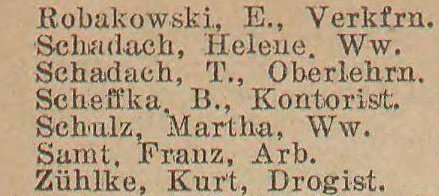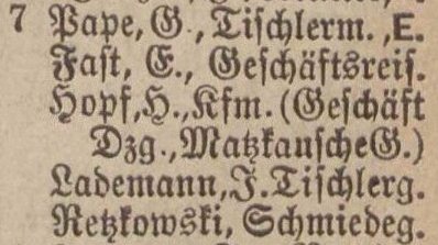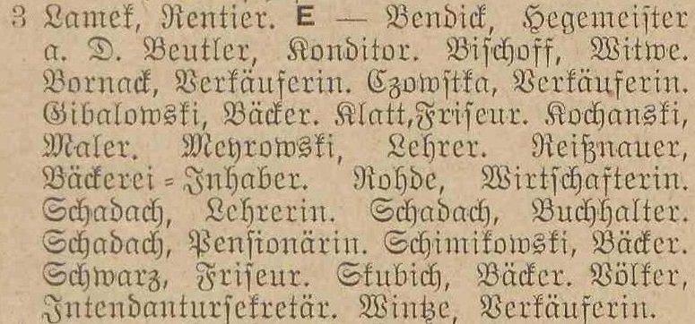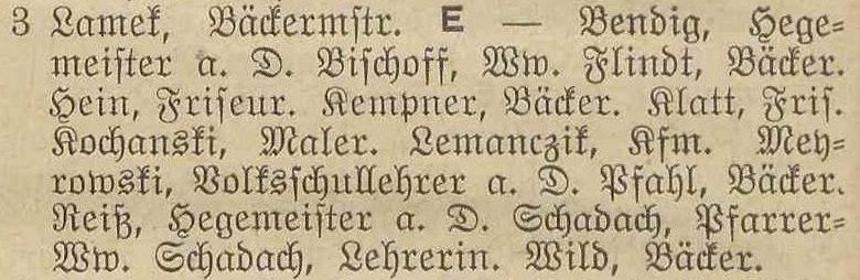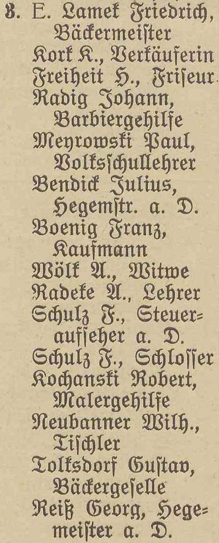 W (Danziger Straße 3): Kochanski (3 osoby), Radtke (1 osobę), Plewka (1 osobę), Bendick (1 osobę).
