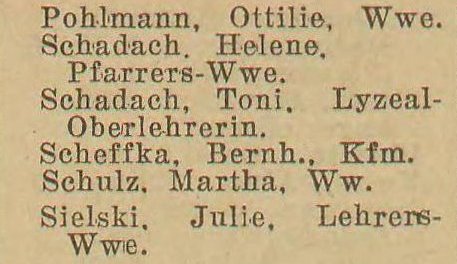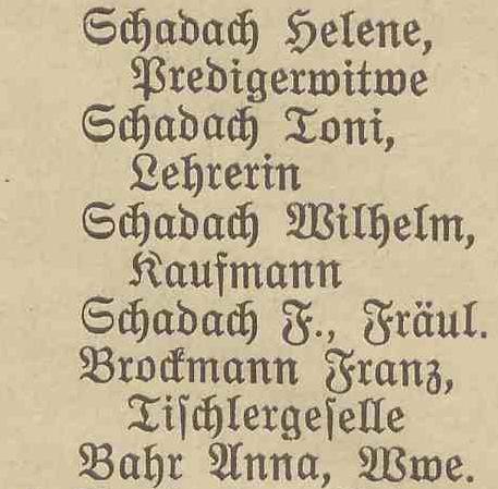 Schadach, Helene, wdowa po pastorze (Pfarrerwitwe).
