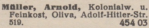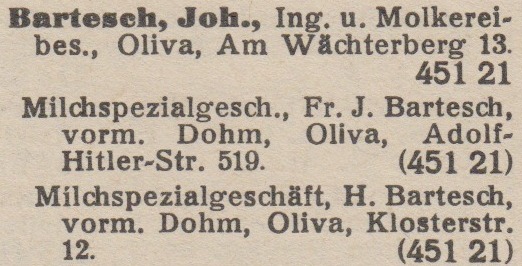 Joh. Bartesch. Arnold Müller. Georg Rick. Książka telefoniczna z 1937 roku. Zbiory TPG Strefa Historyczna WMG.