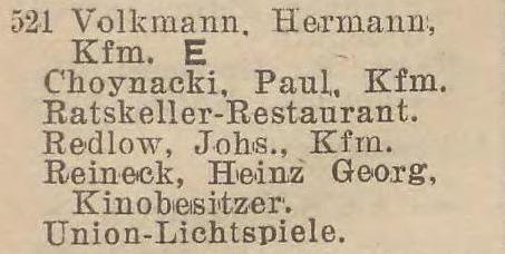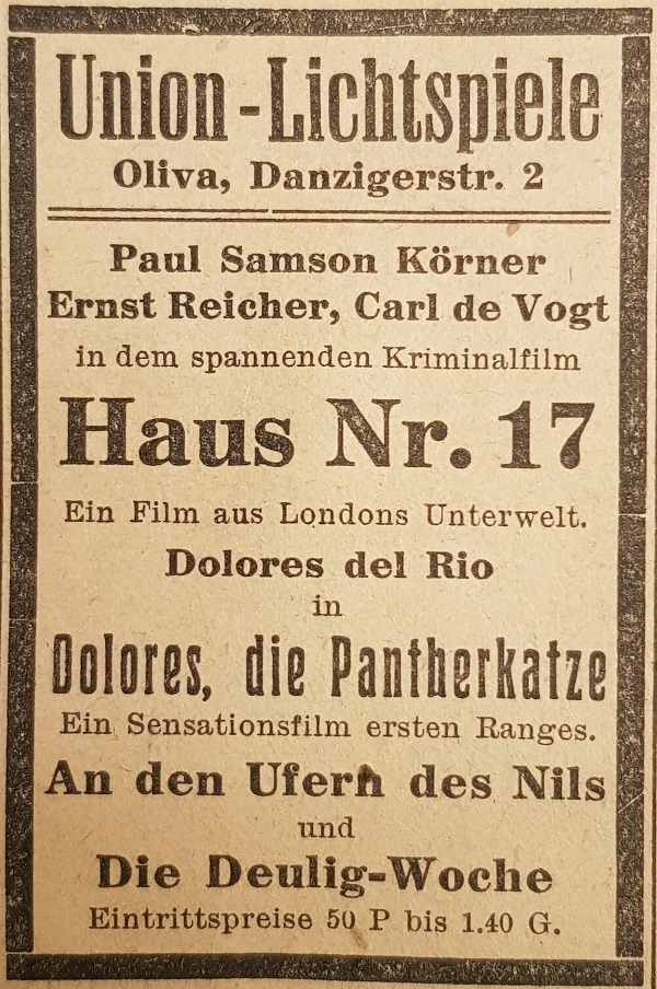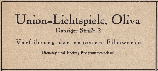 Union Lichtspiele. Reklama z 1925 roku. Zbiory Mirosława Piskorskiego.