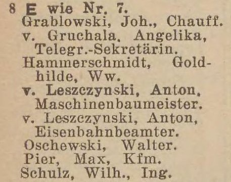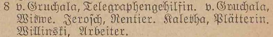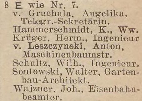 v. Gruchalla, Angela, urzędnik telegraficzny (Telegraphenbeamtin).