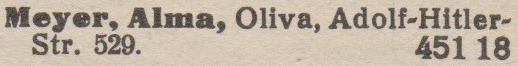 Alma Meyer. Książka adresowa z 1939 roku. Zbiory Krzysztofa Gryndera.