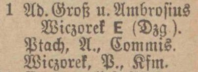 Ad. Groß u. Ambrozius Wieczorek. Książka adresowa Sopot-Oliwa z 1901 roku. Zbiory Pomorskiej Biblioteki Cyfrowej.