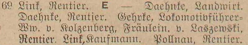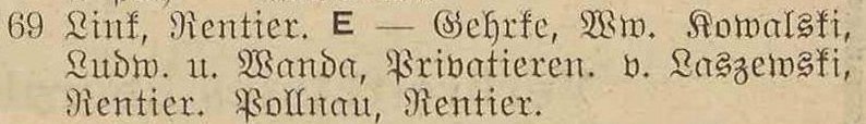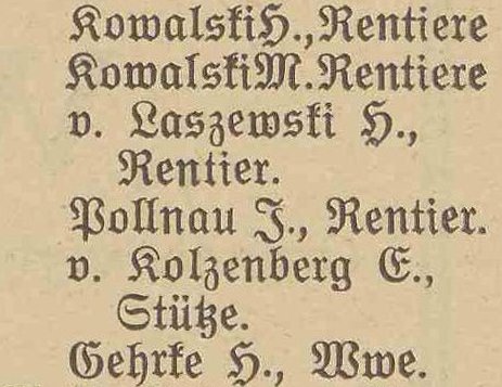 v. Laszewski, Olga, rentierka (Rentiere).
