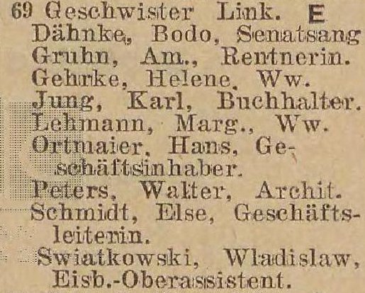 Marie Link. Książka adresowa gminy Oliwa z 1925 roku. Zbiory Pomorskiej Biblioteki Cyfrowej.