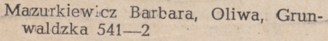 Adres: Grunwaldzka 541. Czesława Grodecka zd. Ciupa(k). Źródło: , 05.1946 poz. 56.