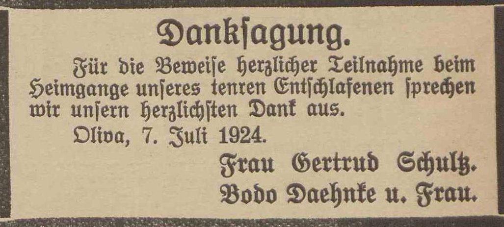Gertrud Schultz. Bodo Daehnke. Olivaer Zeintung nr 156 z 07. 07. 1924 r.