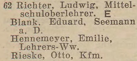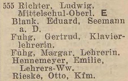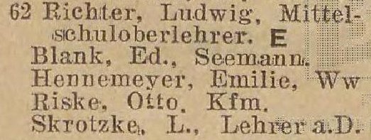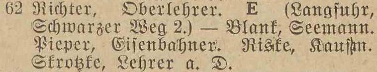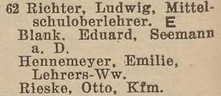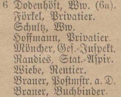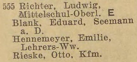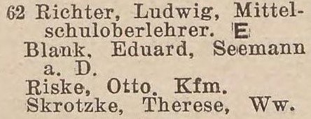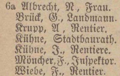 W 1902 roku letników przymowali: Krupp (August) - 2 osoby, Quast - 1 osobę. Zoppoter Chaussee 6 (Olivaer Nachrichten, ).
