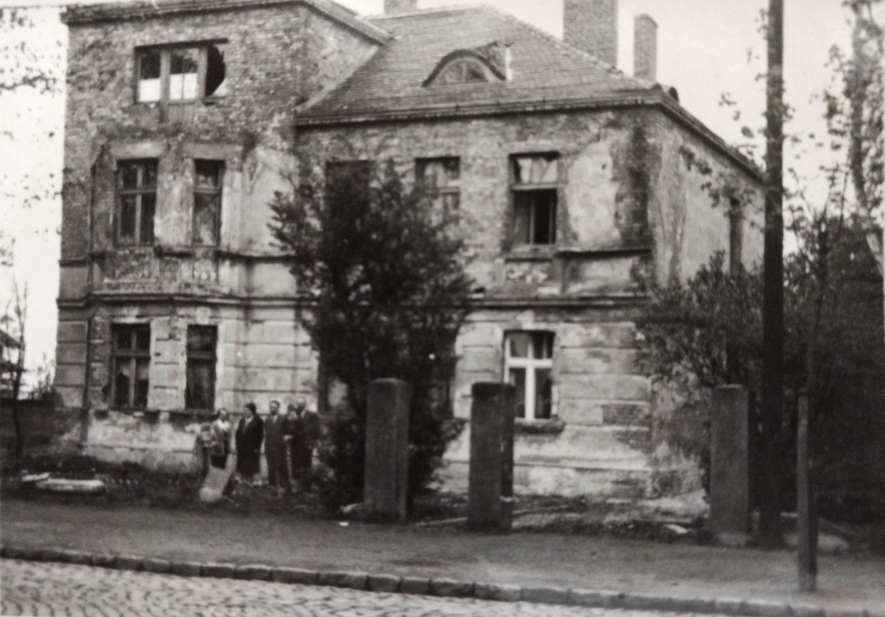 "Na zdjęciu moi dziadkowie Szczęsni wraz z sąsiadami. Z tyłu za domem był piękny ogród z alejkami i fontanną ciągnący się do ul. Dickmana. Po drugiej stronie Grunwaldzkiej przebiegała linia tramwajowa nr 7 do Sopot, działki z altankami aż do cmentarza na wysokości Parku Oliwskiego."
