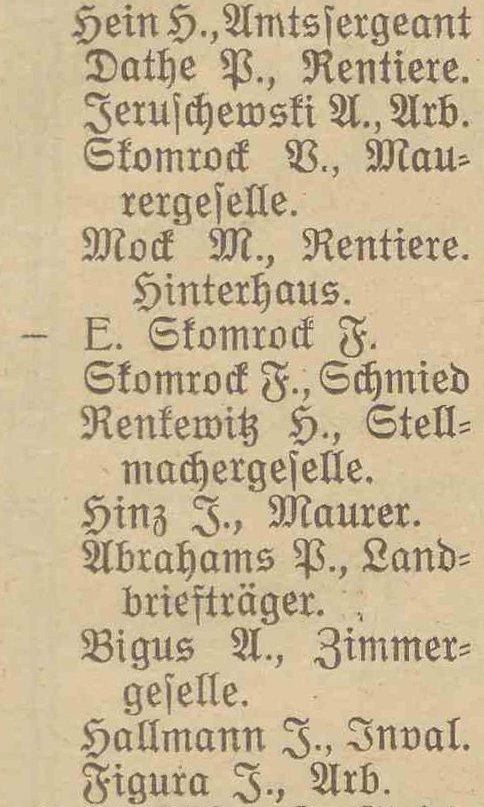 Skomrock. Książka adresowa gminy Oliwa z 1916 roku. Zbiory Mirosława Piskorskiego.