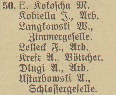 Mathias Kokoscha. Książka adresowa gminy Oliwa z 1916 roku. Zbiory Mirosława Piskorskiego.