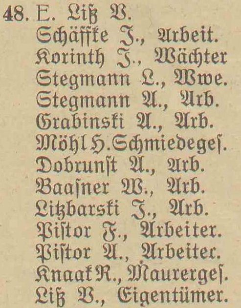 Liß. Książka adresowa gminy Oliwa z 1916 roku. Zbiory Mirosława Piskorskiego.