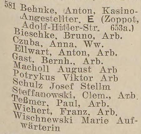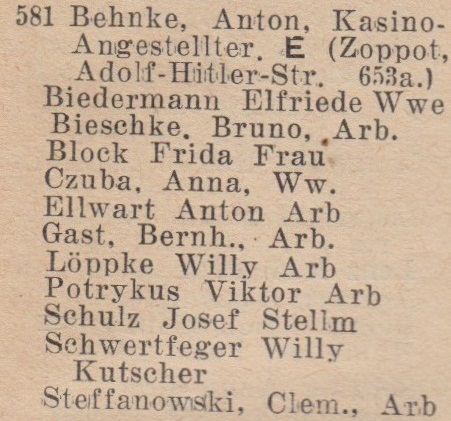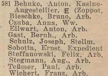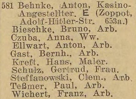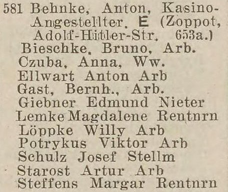 Książka adresowa z roku (Zoppoter Chaussee 14):